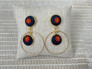 Chouchou motif floral brun et bleu